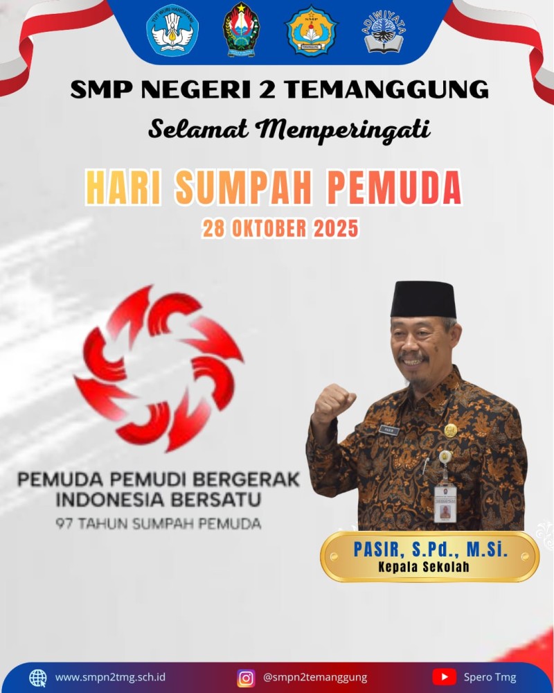 Upacara peringatan Hari Sumpah Pemuda Tahun 2025 pada hari Selasa, 28 Oktober 2025. Sebagai inspektur upacara Ibu Lilis Sri Harningsih, S.Pd, M.Pd Wakil Kepala Sekolah Bidang Kesiswaan dan budaya sekolah SMP Negeri 2 Temanggung.