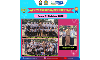 Pada hari Senin, 31 Oktober 2022 dilaksanakan penyerahan piala kejuaraan siswa berprestasi :Lomba Tingkat Pramuka Kwarcab Temanggung Tahun 2022 yang dilaksanakan pada tanggal 28-230 Oktober 2022*Regu Matahari (regu put ...